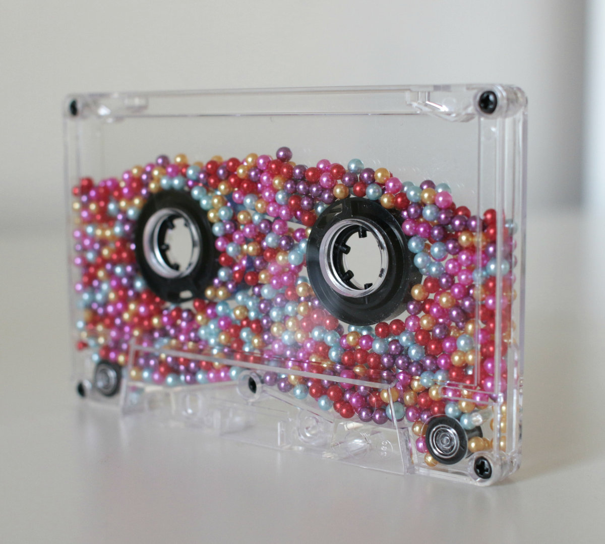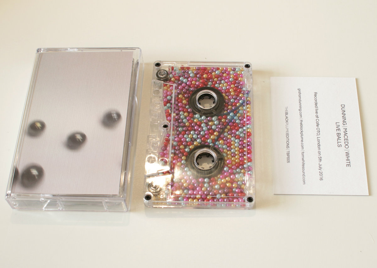 Hand-numbered 'Object Edition' of 'Live Balls' including a 'playable' cassette shell filled with balls and a card insert with release info and unique download code for high-quality digital download of 'Live Balls'. The cassette does not contain any music.